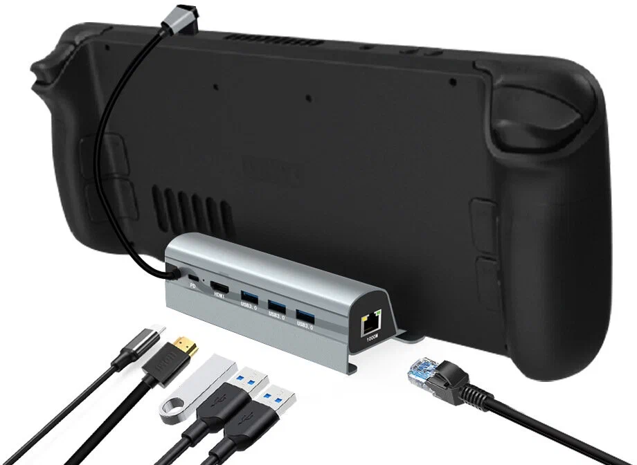 —Steam Deck 6 in 1 USB-C docking station with M.2 SSD enclosure with 65W