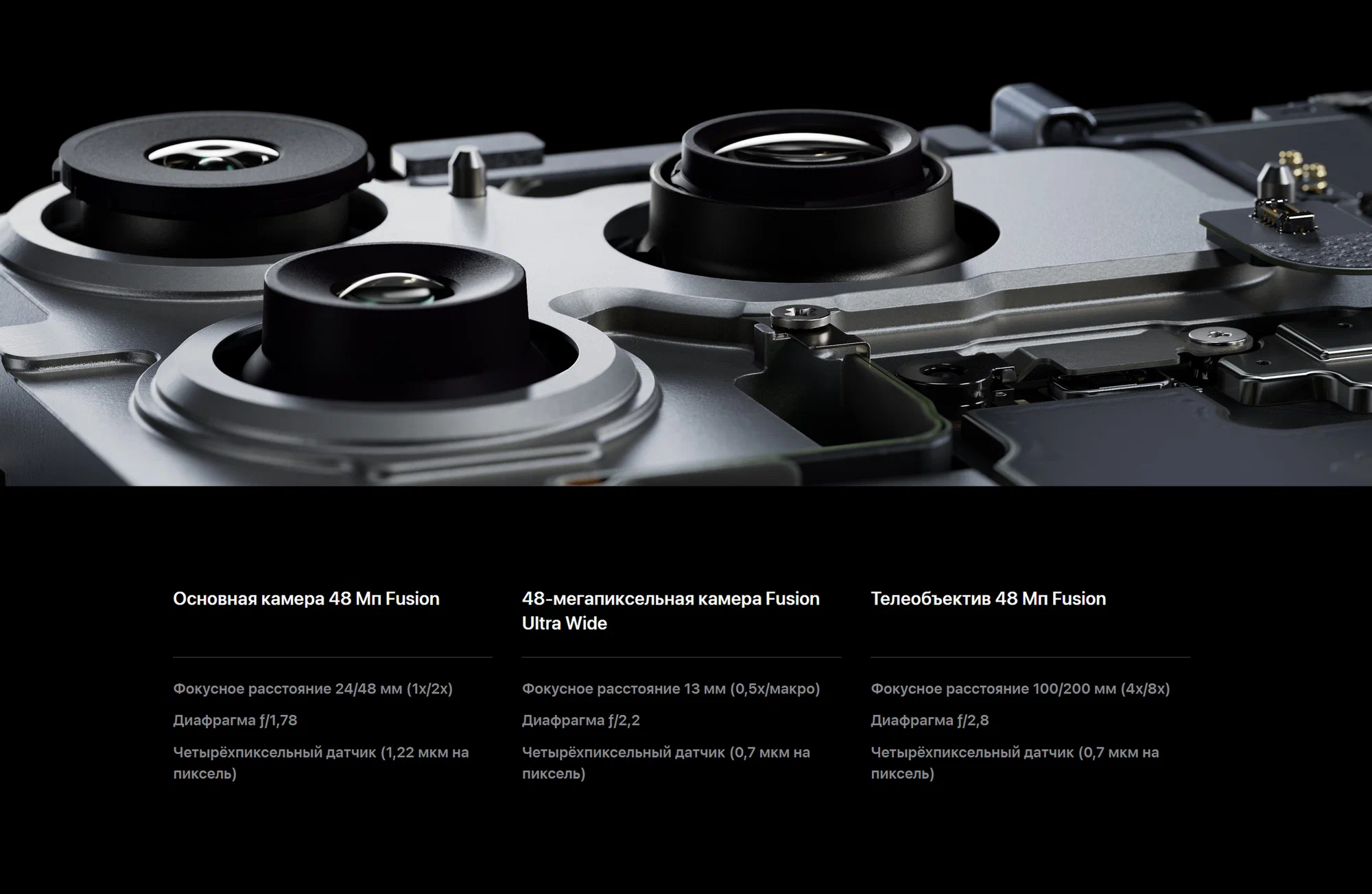 Включён самый крупный в истории iPhone телеобъектив с эквивалентным фокусным расстоянием до 200 мм, обеспеченный новым поколением тетрапризмной конструкции и сенсором с увеличенной на 56% площадью. Это даёт расширенные творческие возможности и повышает дальность съёмки благодаря 16× оптическому зуму. Улучшена съёмка при слабом освещении, а также качество видео.